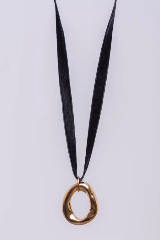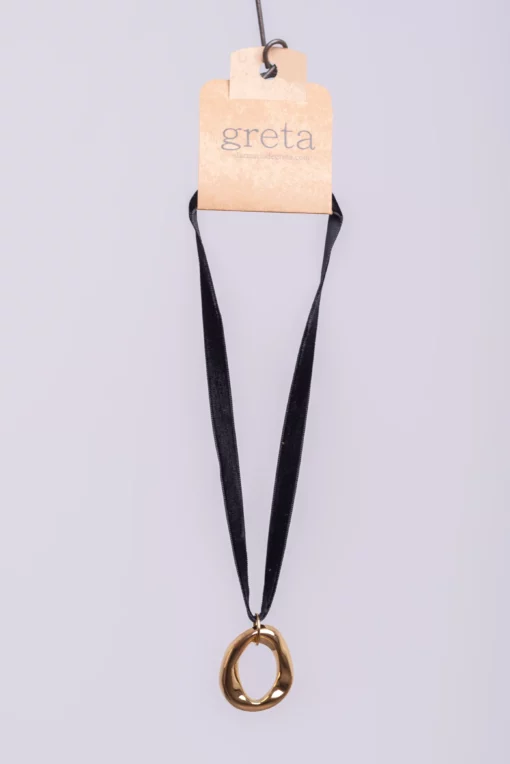 Collar de bisuteria. Collar corto, cinta de terciopelo. Acero dorado.