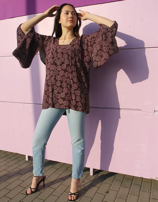 Measurements – 44″(112cm) bust – 12.5″(32cm) sleeve length – 32″(82cm) length.