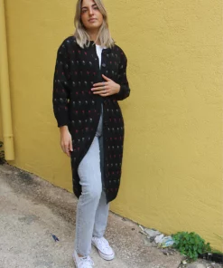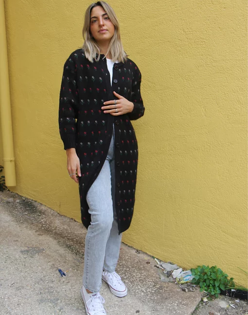 Measurements: 46″/ 117cm bust – 20″/ 51cm sleeve length – 44″ / 112cm top length.