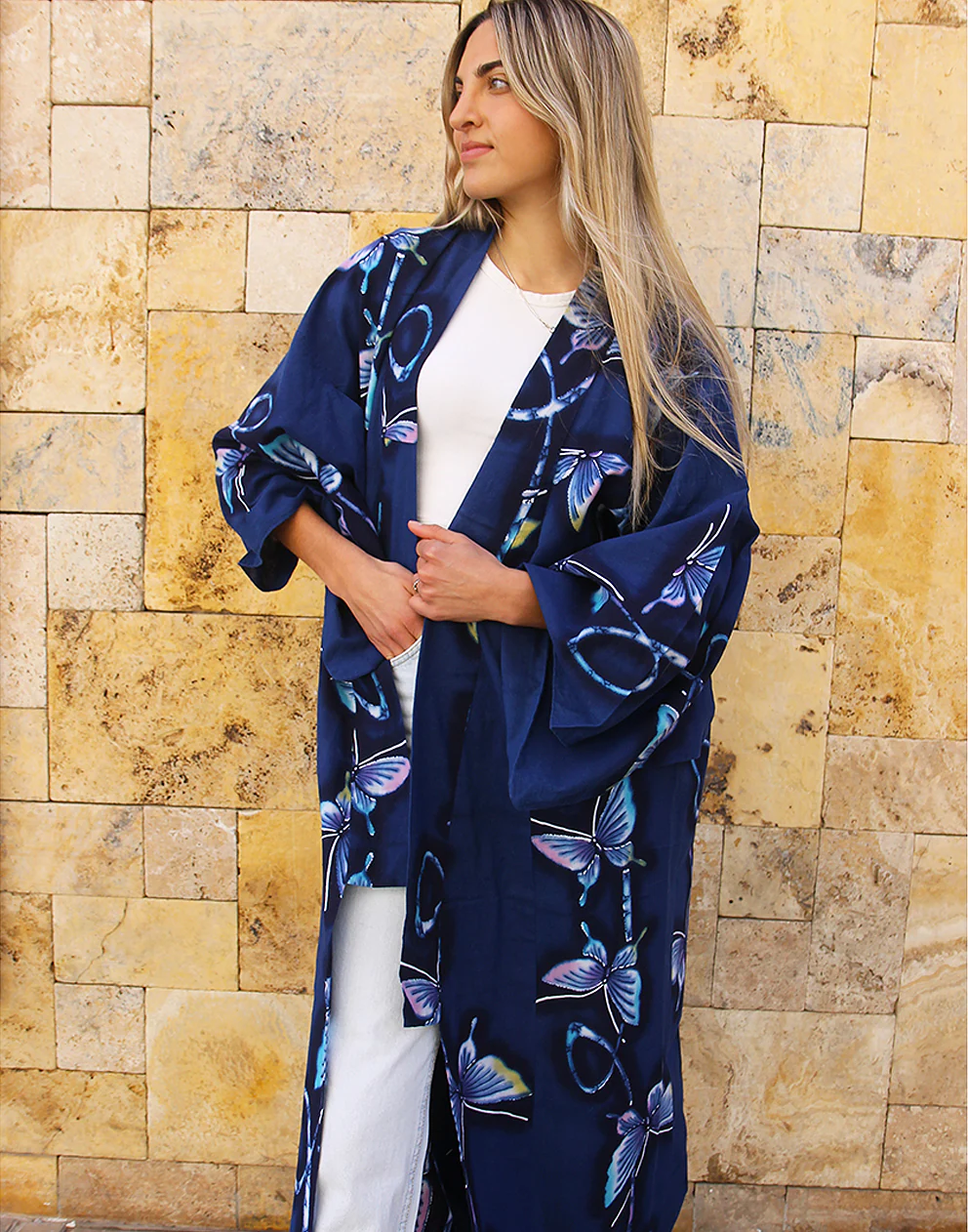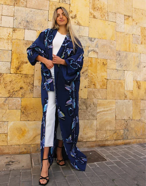 Measurements – 48″(122cm) bust – 14″(36cm) sleeve length – 63″(161cm) length.