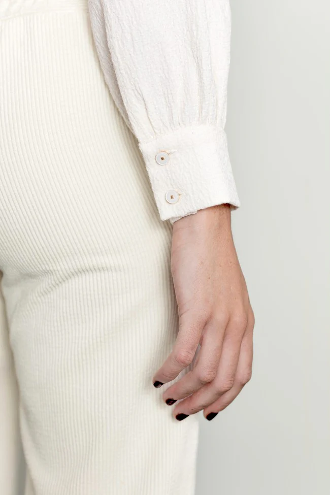 Pantalón de pana en color crudo.