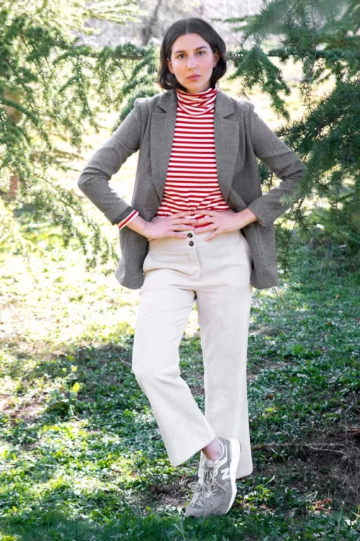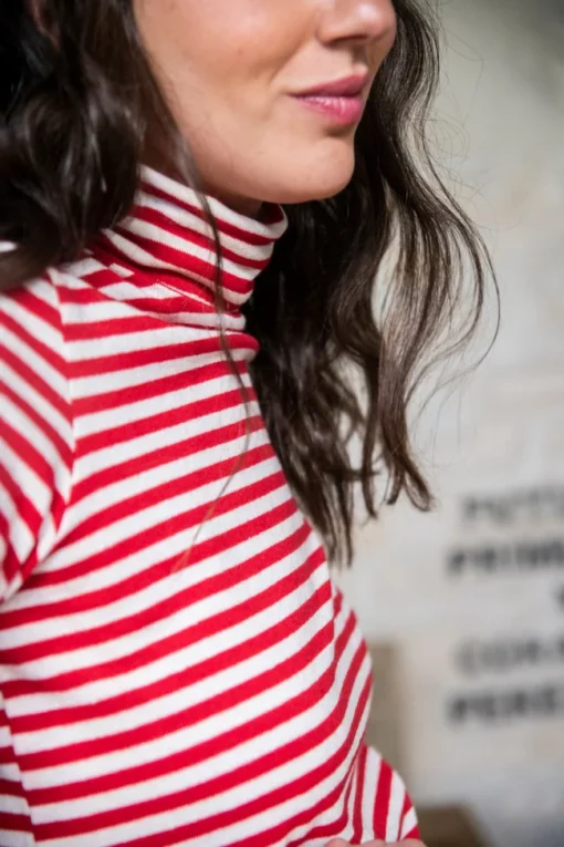 Top de cuello vuelto, realizado en un tejido de algodón con mezcla, suave y ligero que hace que no se pegue al cuerpo.
